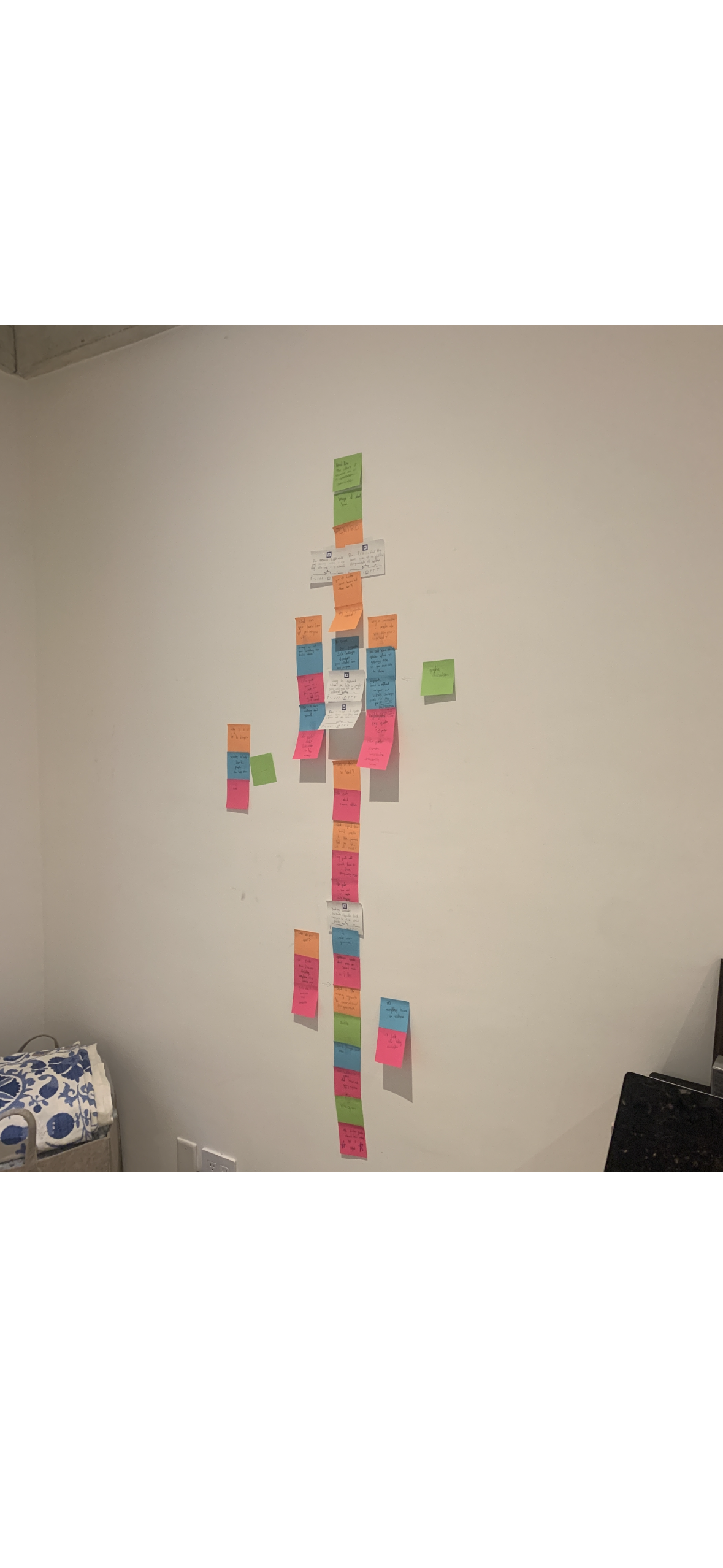 After school one day, I sat down to write the piece and began to panic. Stiff fingers. I took a deep breath and started to outline in a Google Doc but it didn’t feel like enough. Out of the corner of my eye, I saw some Post-Its — green, yellow, pink, you name it. I had an idea: What if I put each part of my story on a Post-It and the workshop the story on my wall?